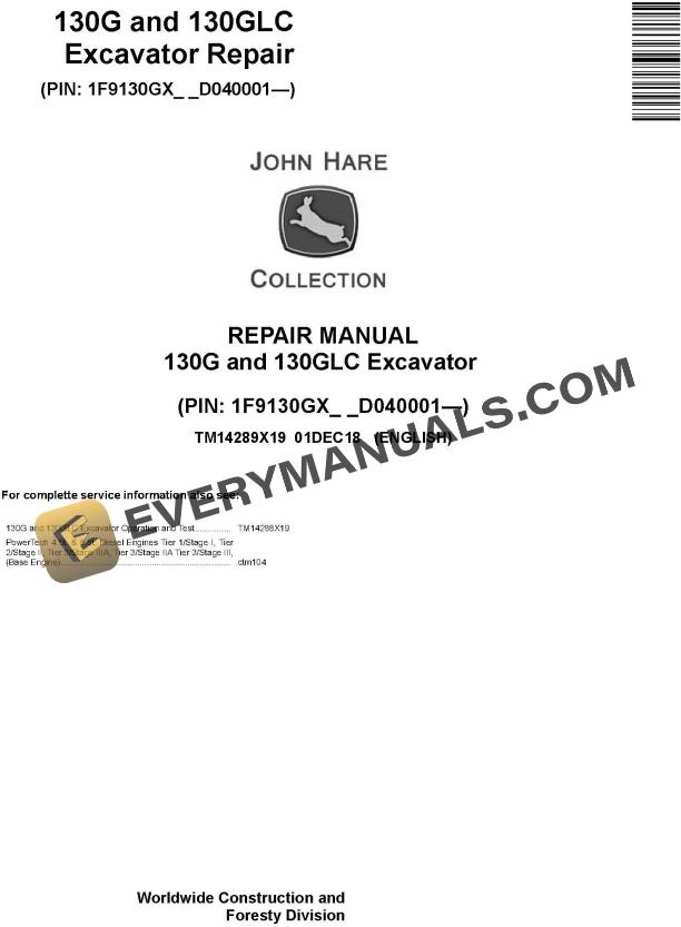 John Deere 130G 130GLC Excavator Repair Manual TM14289X19