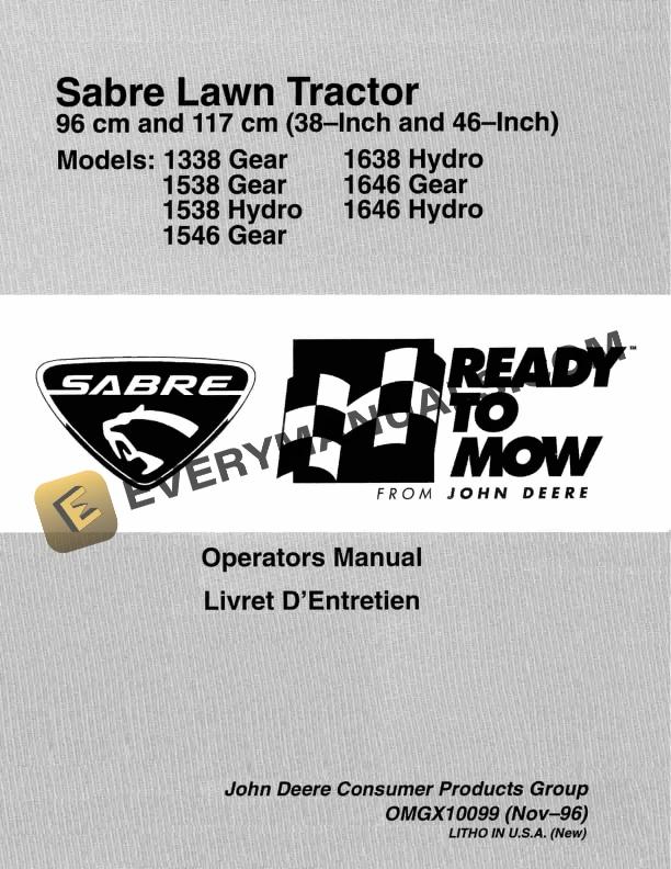 John Deere 1338 1538 1546 1638 1646 Tractor Operator Manual OMGX10099
