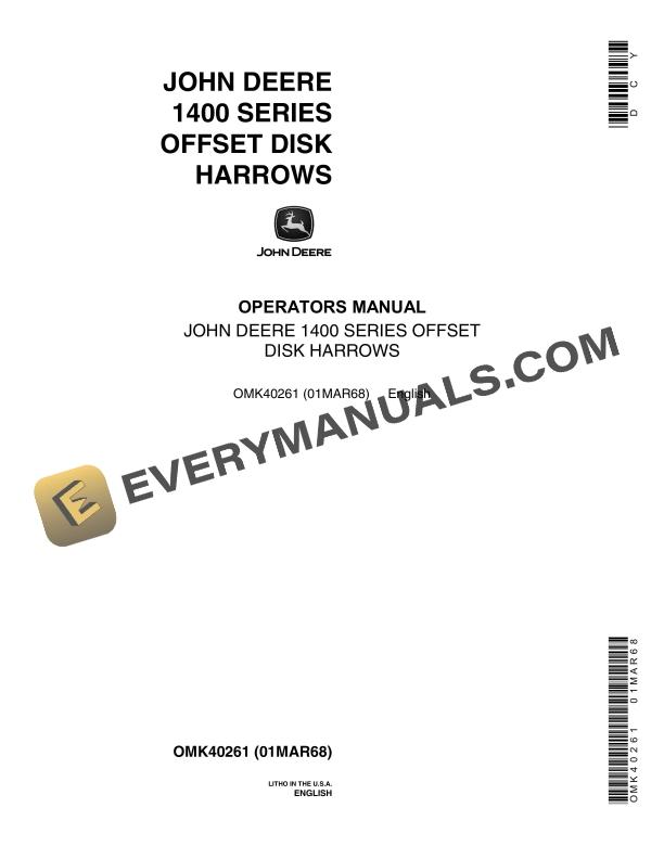 John Deere 1400 SERIES OFFSET DISK HARROWS Operator Manual OMK40261