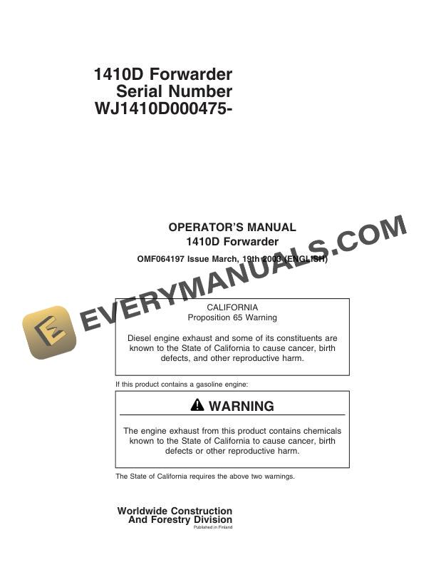 John Deere 1410D Forwarder Operator Manual OMF064197