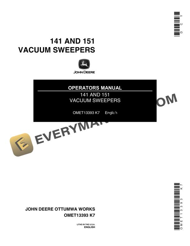 John Deere 141 AND 151 VACUUM SWEEPERS Operator Manual OMET13393