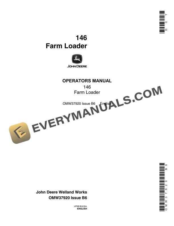 John Deere 146 Farm Loader Operator Manual OMW37920