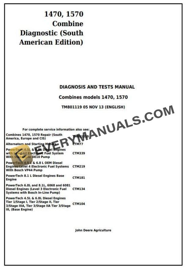 John Deere 1470 1570 Combine South American Edition Technical Manual TM801119