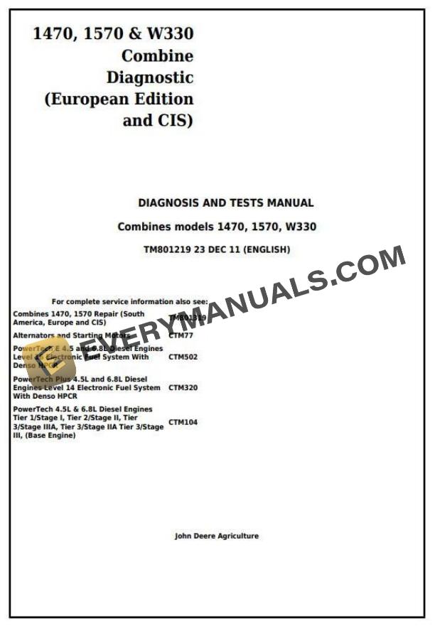 John Deere 1470 1570 W330 Combine European Edition CIS Technical Manual TM801219