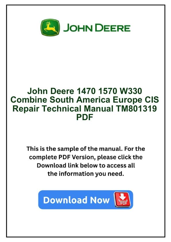 John Deere 1470 1570 W330 Combine South America Europe CIS Repair Technical Manual TM801319 PDF
