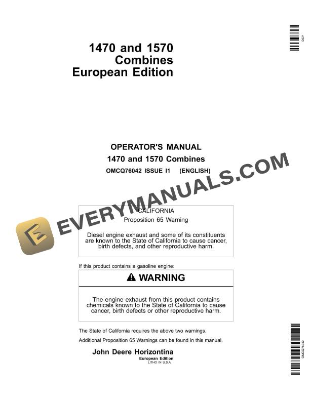 John Deere 1470 and 1570 Combine Operator Manual OMCQ76042