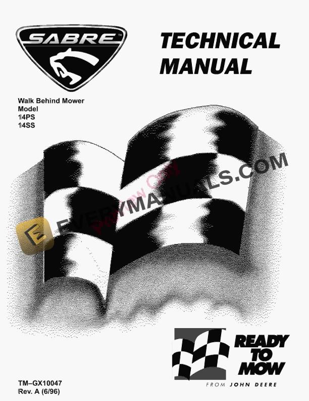 John Deere 14PS and 14SS Sabre Walk Behind Mower Technical Manual TMGX10047 01JUN96