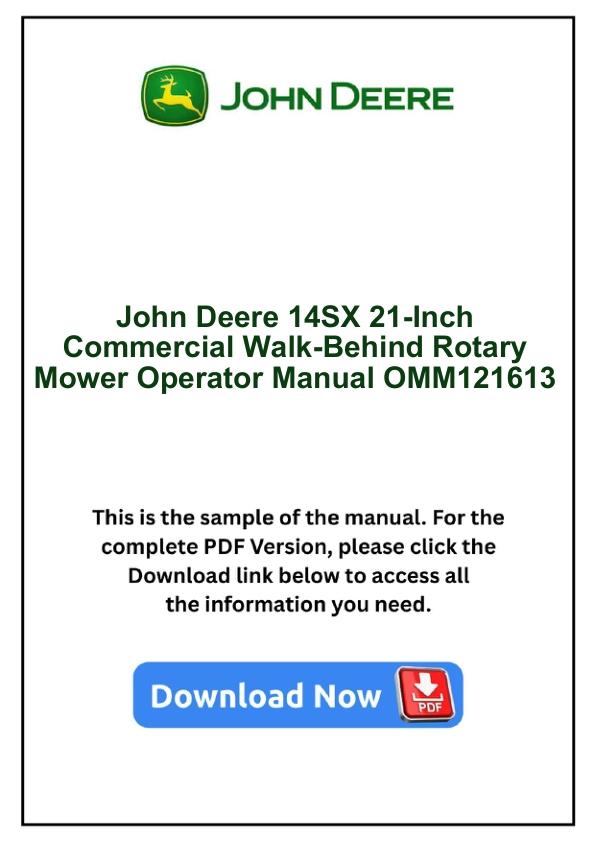 John Deere 14SX 21-Inch Commercial Walk-Behind Rotary Mower Operator Manual OMM121613