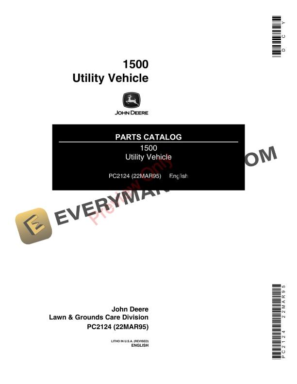 John Deere 1500 Utility Vehicle Parts Catalog PC2124 22MAR95