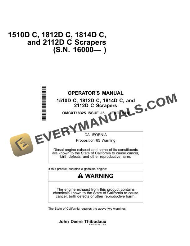 John Deere 1510D C, 1812D C, 1814D C, 2112D C Scraper Operator Manual OMCXT18325 by manualgroup - Issuu