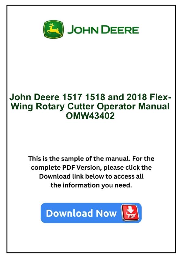 John Deere 1517 1518 and 2018 Flex- Wing Rotary Cutter Operator Manual OMW43402