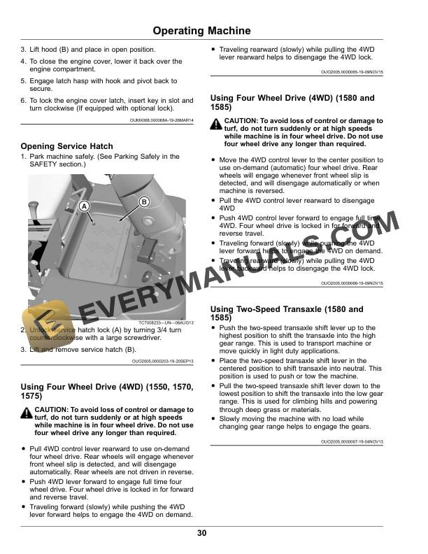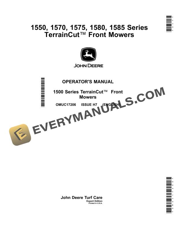John Deere 1550, 1570, 1575, 1580, 1585 Series TerrainCut Front Mowers Operator Manual OMUC17206