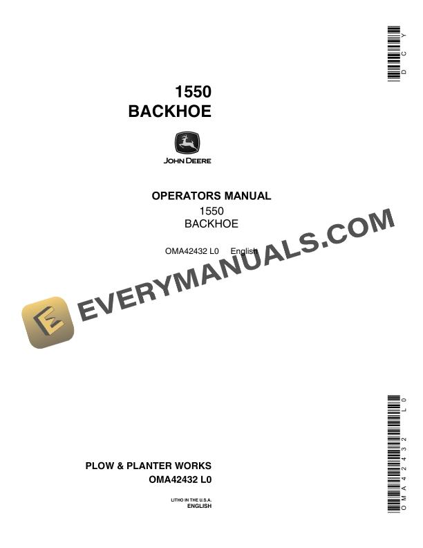 John Deere 1550 BACKHOE Operator Manual OMA42432