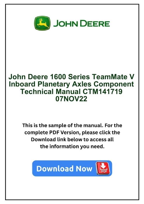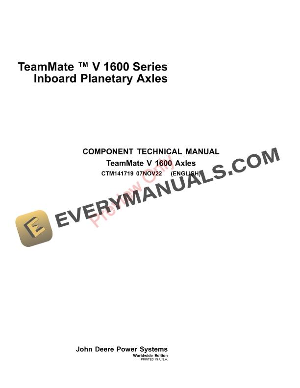 John Deere 1600 Series TeamMate V Inboard Planetary Axles Component Technical Manual CTM141719 07NOV