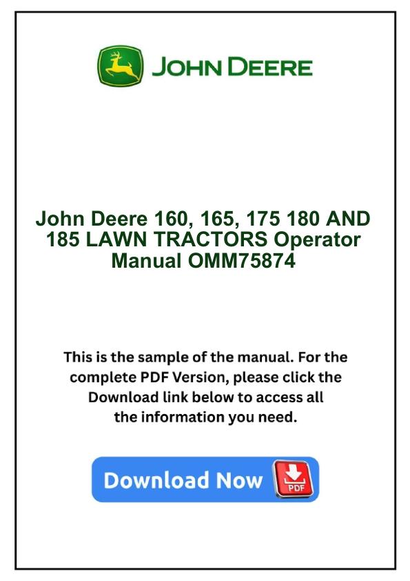 John Deere 160, 165, 175 180 AND 185 LAWN TRACTORS Operator Manual OMM75874 by manualgroup - Issuu