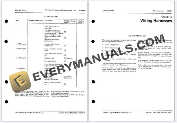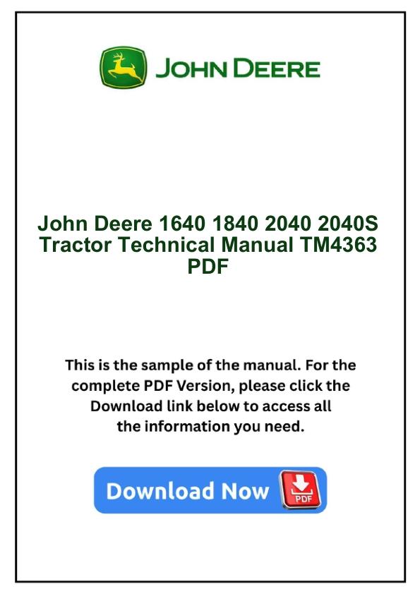 John Deere 1640 1840 2040 2040S Tractor Technical Manual TM4363 PDF