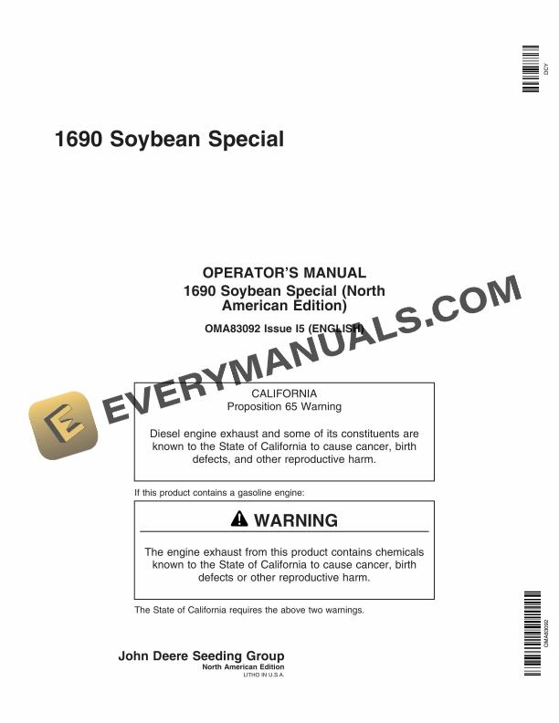 John Deere 1690 Soybean Special Operator Manual OMA83092 by manualgroup - Issuu