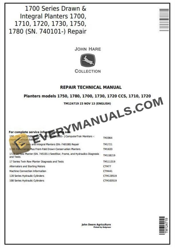 John Deere 1700 1710 1720 1730 1750 1780 Planter Repair Technical Manual TM124719