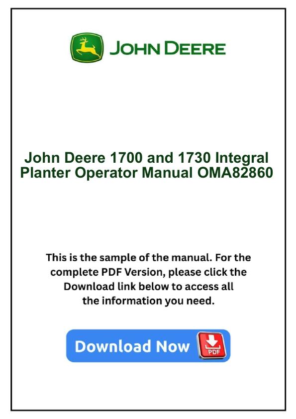 John Deere 1700 and 1730 Integral Planter Operator Manual OMA82860