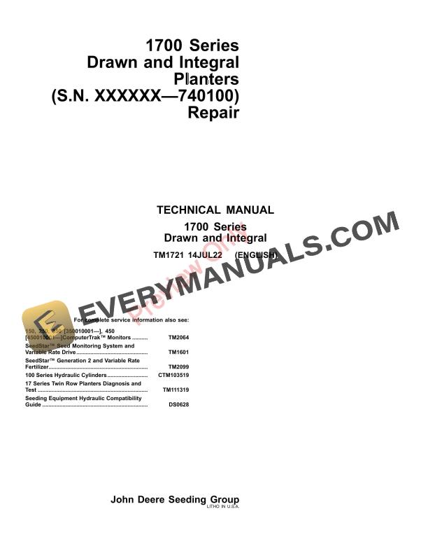 Machine: 1700 Series Drawn and Integral Planters 1700, 1710, 1720, 1730, 1750, 1780 Models (000000-740100)