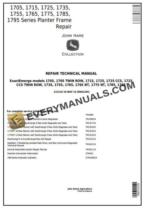 Model: 1705, 1705 TWIN ROW, 1715, 1725, 1725 CCS, 1725 CCS TWIN ROW, 1735, 1755, 1765, 1765 NT, 1775 NT, 1785, 1795