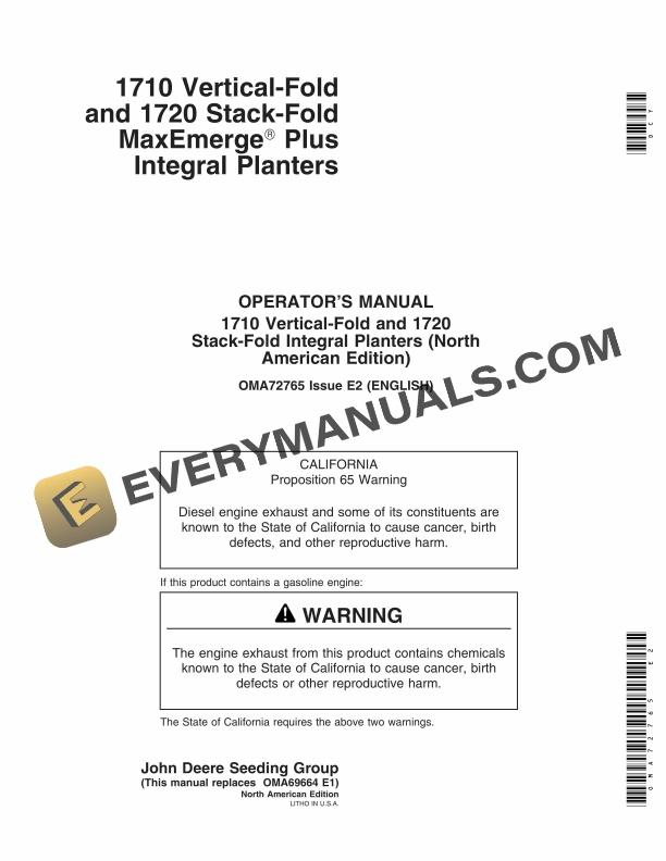 John Deere 1710 Vertical-Fold and 1720 Stack Operator Manual OMA72765