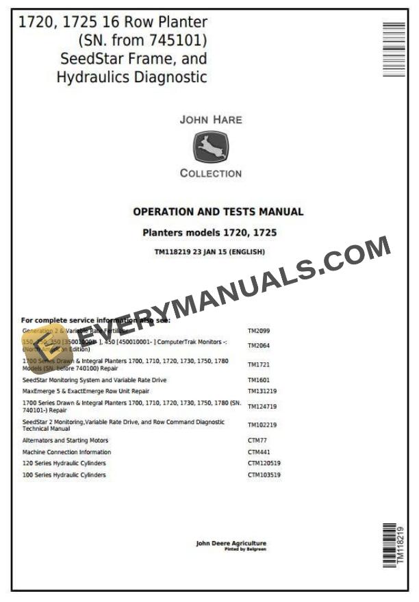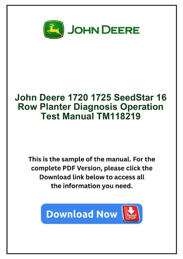 John Deere 1720 1725 SeedStar 16 Row Planter Diagnosis Operation Test Manual TM118219