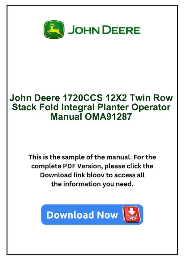 John Deere 1720CCS 12X2 Twin Row Stack Fold Integral Planter Operator Manual OMA91287 by manualgroup - Issuu