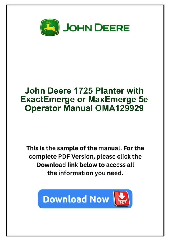 John Deere 1725 Planter with ExactEmerge or MaxEmerge 5e Operator Manual OMA129929