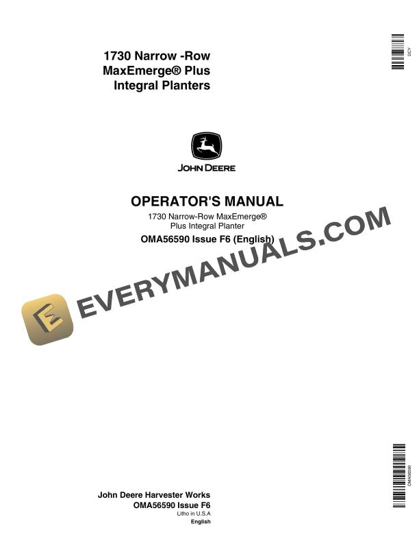 John Deere 1730 Narrow-Row MaxEmerge Plus Integral Planter Operator Manual OMA56590 by manualgroup - Issuu