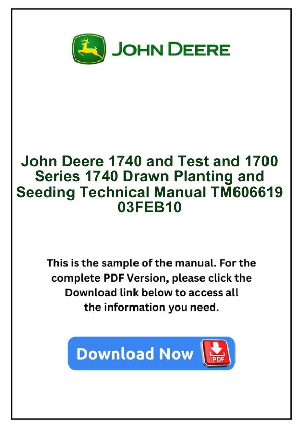 John Deere 1740 and Test and 1700 Series 1740 Drawn Planting and Seeding Technical Manual TM606619 0