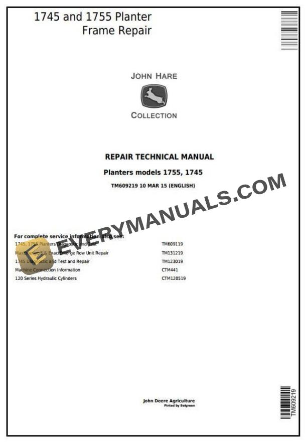 John Deere 1745 1755 Planter Frame Repair Technical Manual TM609219