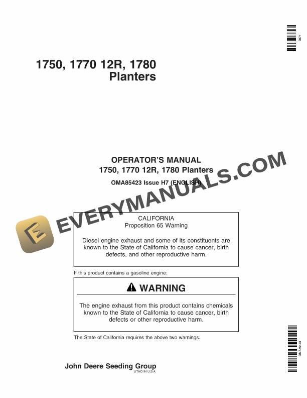 John Deere 1750, 1770 12R, 1780 Planter Operator Manual OMA85423 by manualgroup - Issuu