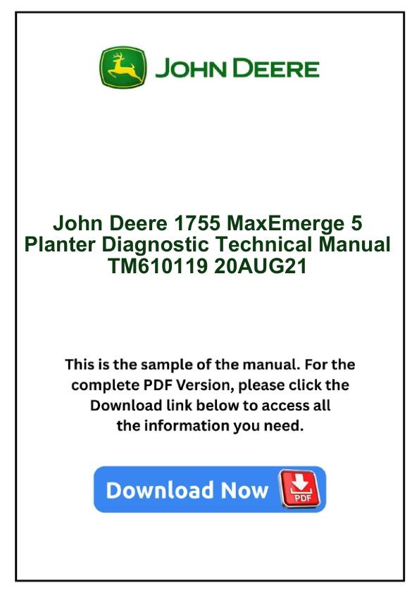 John Deere 1755 MaxEmerge 5 Planter Diagnostic Technical Manual TM610119 20AUG21