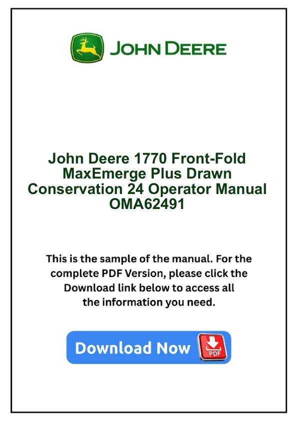 John Deere 1770 Front-Fold MaxEmerge Plus Drawn Conservation 24 Operator Manual OMA62491