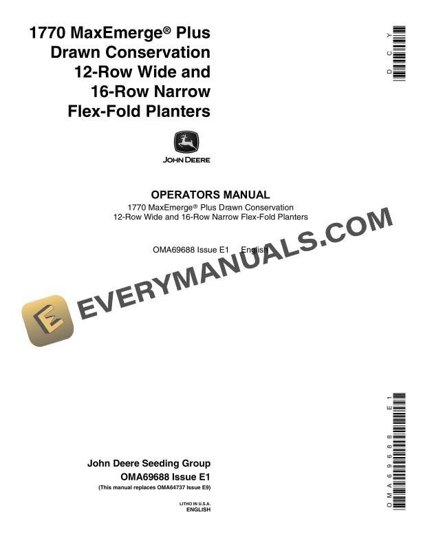 John Deere 1770 MaxEmerge Plus Drawn Conservation 12 Operator Manual OMA69688