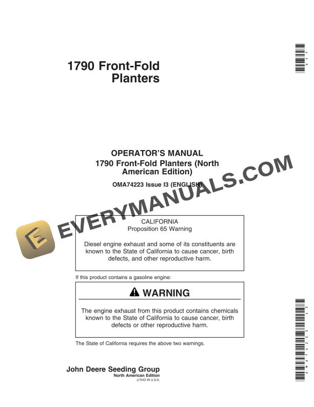 John Deere 1790 Front-Fold Planter Operator Manual OMA74223