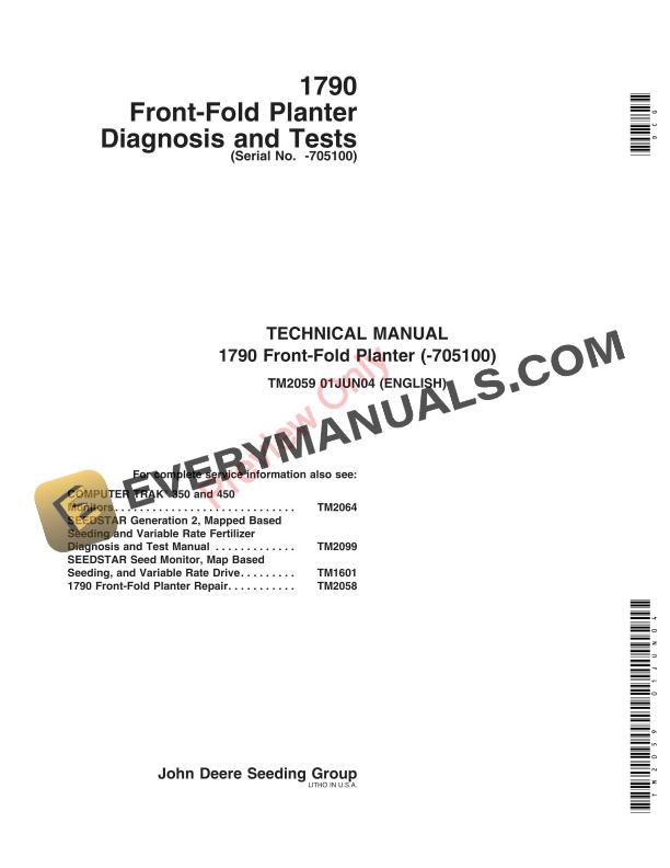 John Deere 1790 Front Fold Planter Technical Manual TM2059 01JUN04