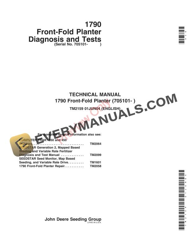 John Deere 1790 Front Fold Planter Technical Manual TM2159 01JUN04