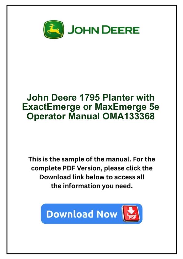 John Deere 1795 Planter with ExactEmerge or MaxEmerge 5e Operator Manual OMA133368
