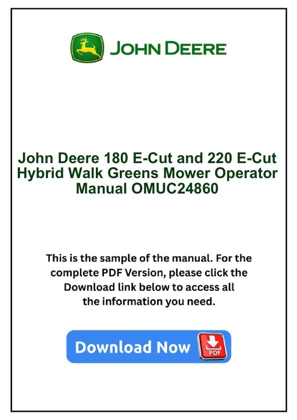 John Deere 180 E-Cut and 220 E-Cut Hybrid Walk Greens Mower Operator Manual OMUC24860