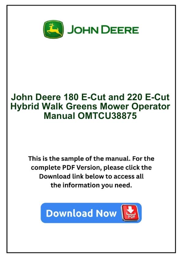 John Deere 180 E-Cut and 220 E-Cut Hybrid Walk Greens Mower Operator Manual OMTCU38875