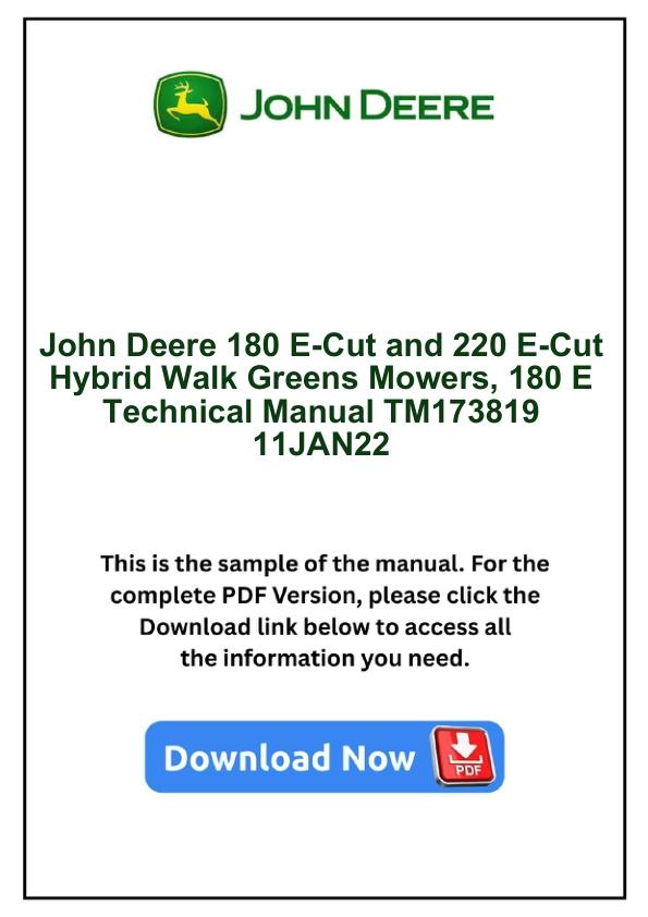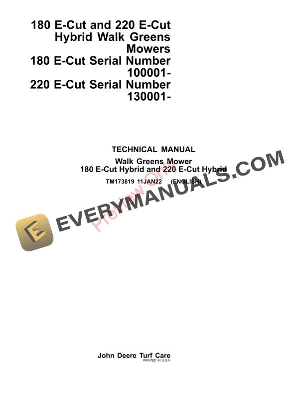 Machine: 180 E-Cut and 220 E-Cut Hybrid Walk Greens Mowers, 180 E-Cut (100001-) 220 E-Cut (130001-)