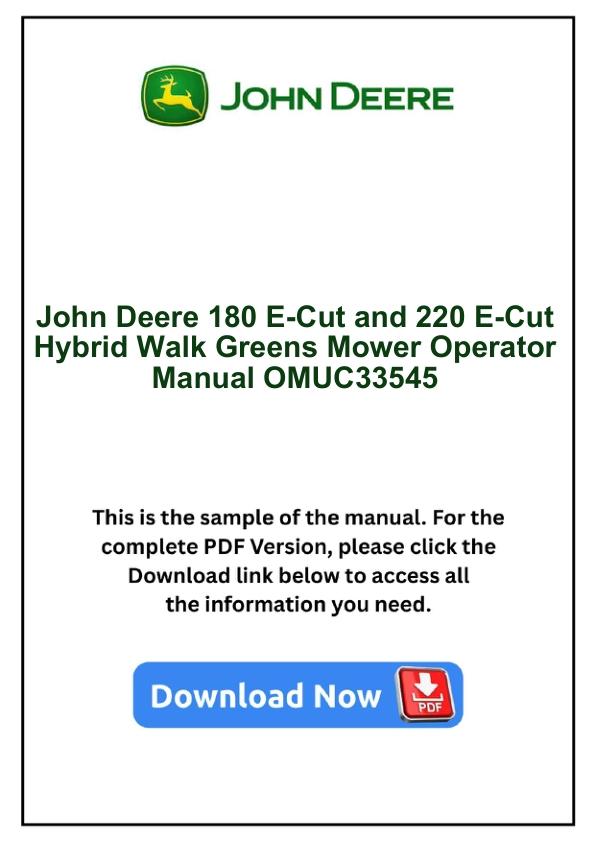 John Deere 180 E-Cut and 220 E-Cut Hybrid Walk Greens Mower Operator Manual OMUC33545