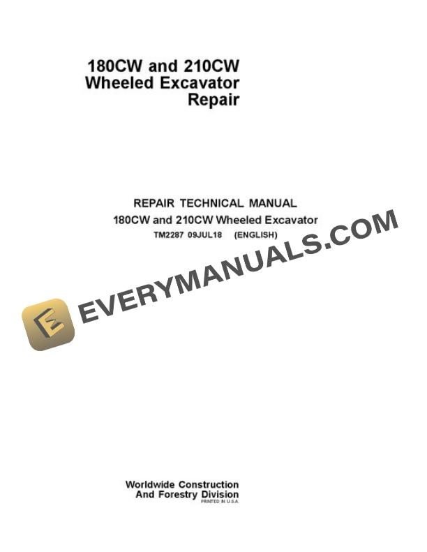 John Deere 180CW 210CW Excavator Repair Manual TM2287 by manualgroup - Issuu