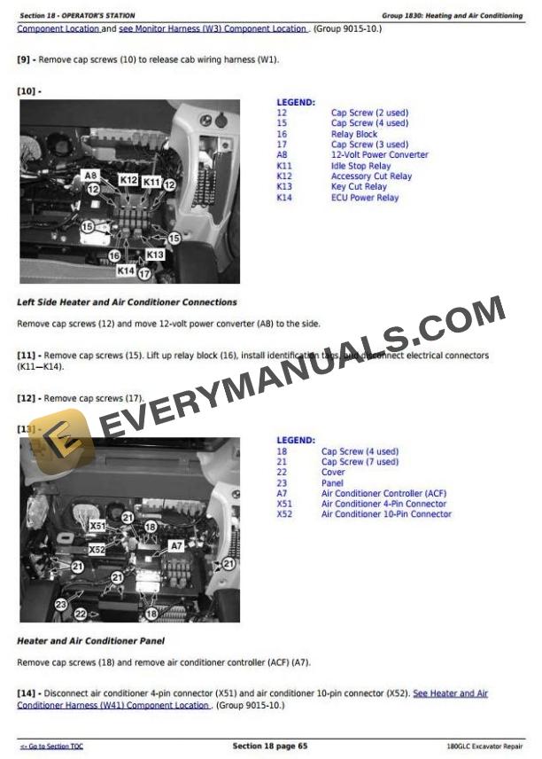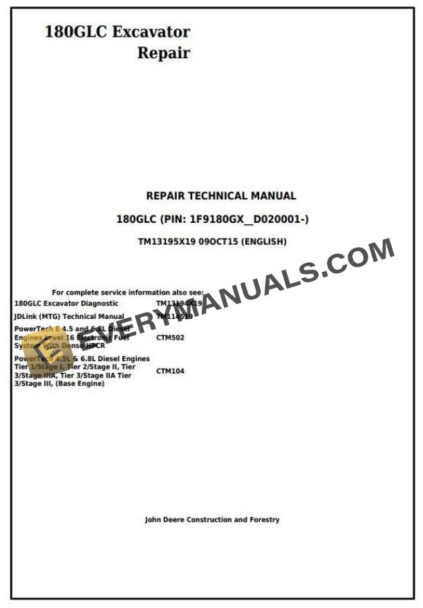 John Deere 180GLC Excavator Repair Technical Manual TM13195X19