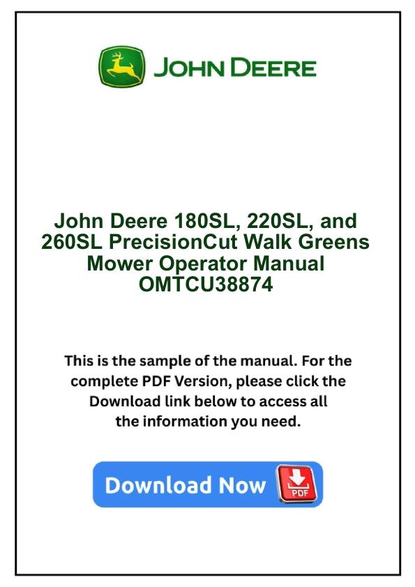 John Deere 180SL, 220SL, and 260SL PrecisionCut Walk Greens Mower Operator Manual OMTCU38874 by manualgroup - Issuu