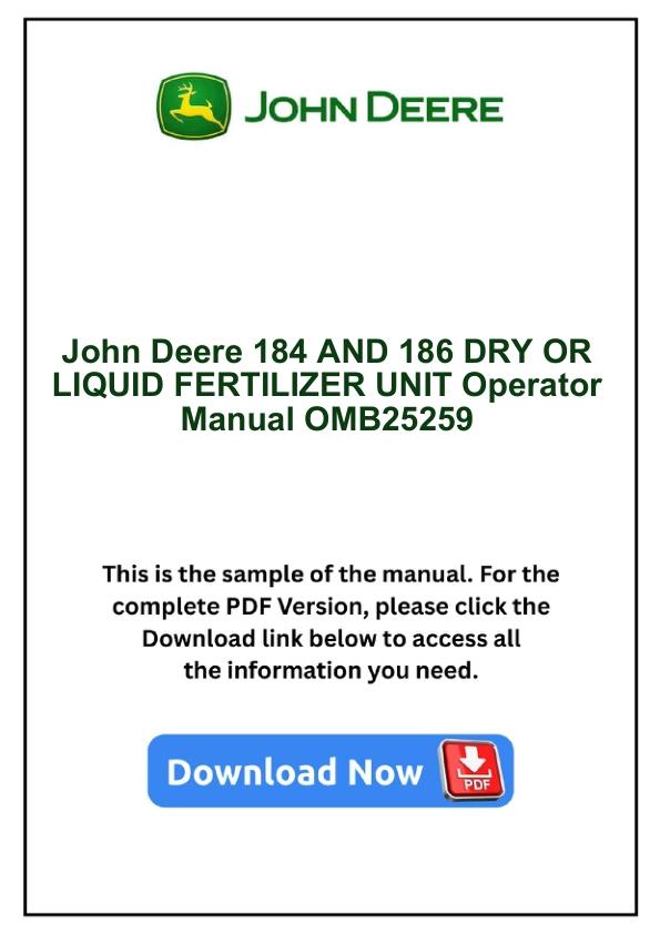 John Deere 184 AND 186 DRY OR LIQUID FERTILIZER UNIT Operator Manual OMB25259