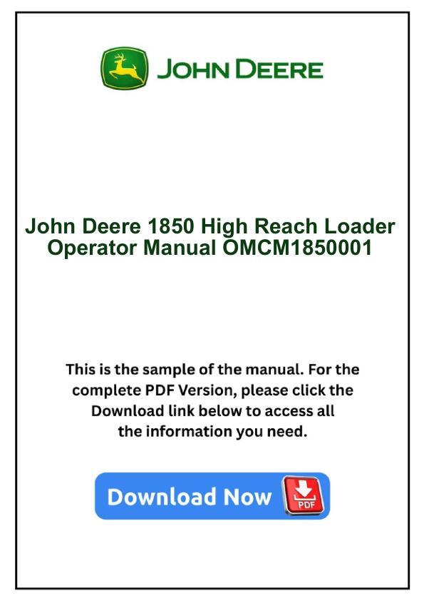 John Deere 1850 High Reach Loader Operator Manual OMCM1850001 by manualgroup - Issuu