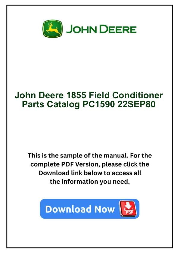 John Deere 1855 Field Conditioner Parts Catalog PC1590 22SEP80